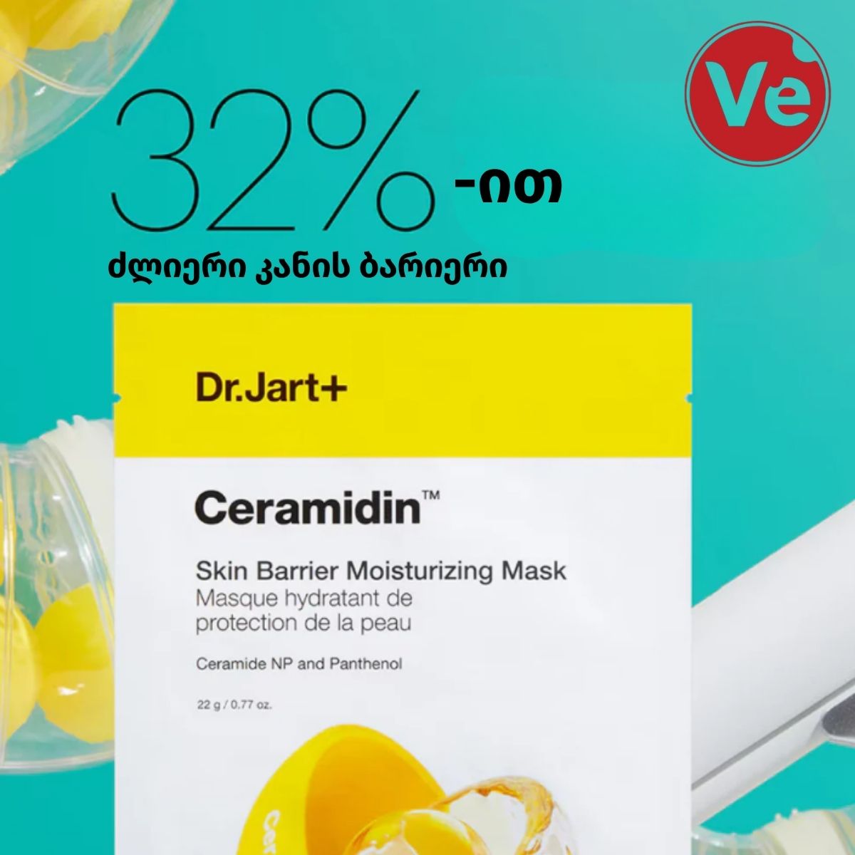 ეფექტური ქსოვილის ნიღაბი, შექმნილია კანის ბარიერის გასაძლიერებლად და ინტენსიური დატენიანებისთვის. კერამიდებით გამდიდრებული ფორმულა ხელს უწყობს კანის დამცავი ფენის აღდგენას, ამცირებს სიმშრალესა და დაჭიმულობას, უზრუნველყოფს ხანგრძლივ დატენიანებას და კანს ანიჭებს ჯანმრთელ, ელასტიურ იერს. ნიღაბი განსაკუთრებით ეფექტურია მაშინ, როდესაც კანი არის დეჰიდრატირებული, მგრძნობიარე ან სტრესის ქვეშ.
