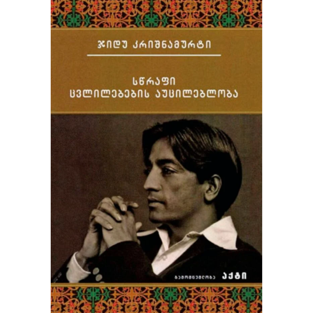 ავტორის 33 თავისგან (ინტერვიუსგან) შემდგარი წიგნი – „სწრაფი ცვლილებების აუცილებლობა“ – ისეთ ფუნდამენტურ საკითხებს ეხება როგორებიცაა: გაცნობიერება, არსებობს თუ არა ღმერთი?, შიში, როგორ ვიცხოვროთ ამ სამყაროში, ურთიერთობა, კონფლიქტი, რელიგიური ცხოვრება, მთელის დანახვა, მორალი, თვითმკვლელობა, დისციპლინა, რაც არის, მაძიებლობა, ორგანიზაცია, სიყვარული და სექსი, აღქმა, ტანჯვა, გული და გონება, სილამაზე და ხელოვანი, დამოკიდებულება, რწმენა, სიზმრები, ტრადიციები, განპირობებულობა, ბედნიერება, სწავლა, თვითგამოხატვა, ვნება, წესრიგი, ინდივიდი და საზოგადოება, მედიტაცია და ენერგია, აზრის დასასრული, ახალი ადამიანი.
