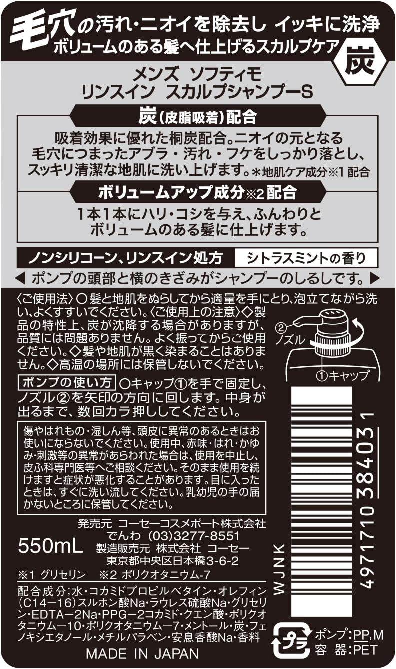 Softymo Men Rinsuin Scalp Shampoo არის პროფესიონალური ხარისხის შამპუნი, რომელიც შექმნილია სპეციალურად მამაკაცების თმის მოვლისთვის. მისი ეფექტური ფორმულა ღრმად წმენდს თავის კანსა და თმის ძირებს, ამცირებს ჭარბ ცხიმსა და ჭუჭყს, მაგრამ ამავდროულად ინარჩუნებს ბუნებრივ ტენიანობას.