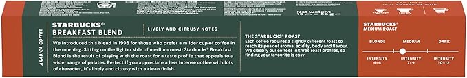 Starbucks Breakfast Blend ყავის კაფსულები (Nespresso Original) – 10ც ინტენსივობა: 7 / 10